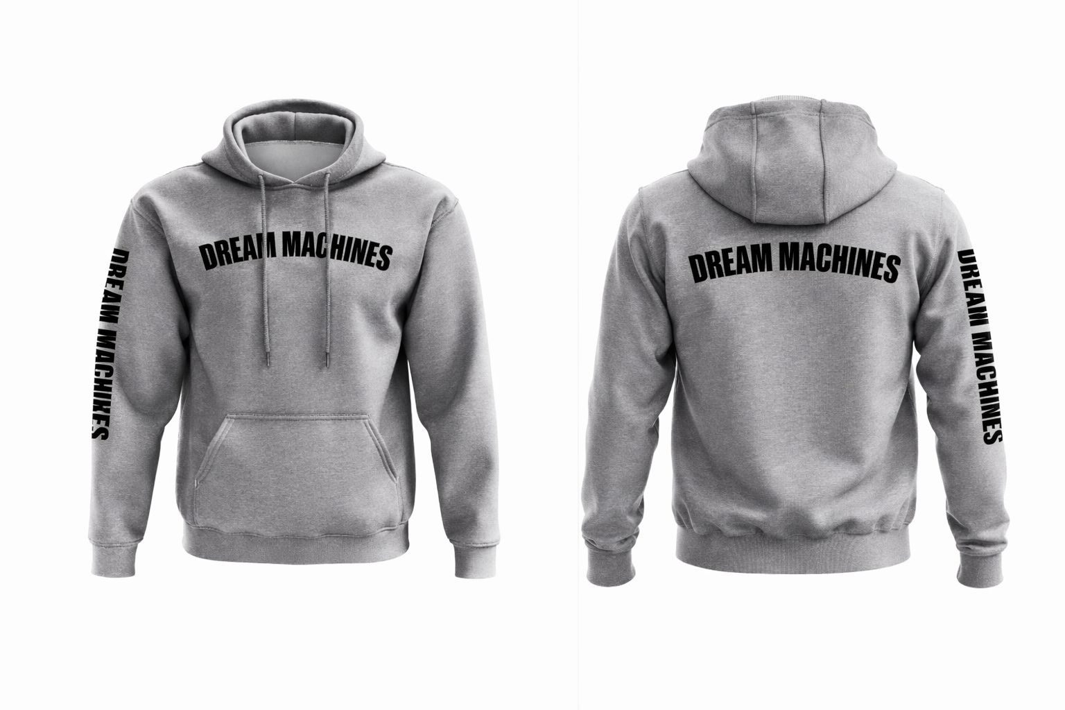 Turn your passion into wearable art. The Dream Machines hoodie features a premium grey base with bold gold detailing and a striking rear vehicle graphic, designed for true car enthusiasts.